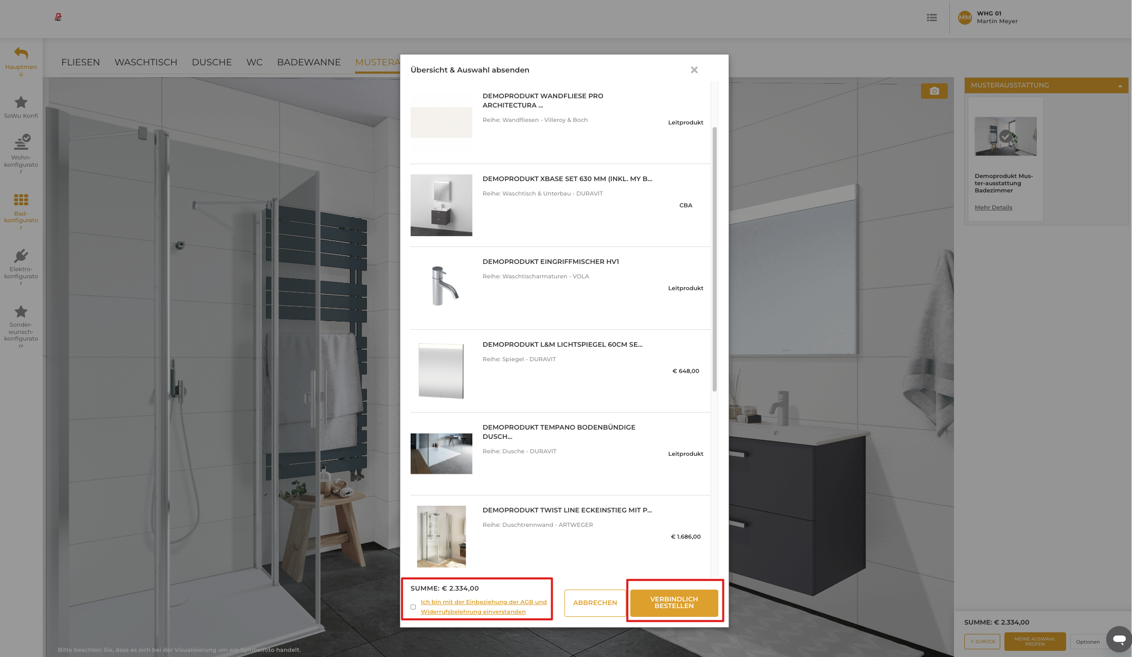 Der Kunde bestätigt die AGB über eine Pflicht-Checkbox, bevor er verbindlich bestellen kann.