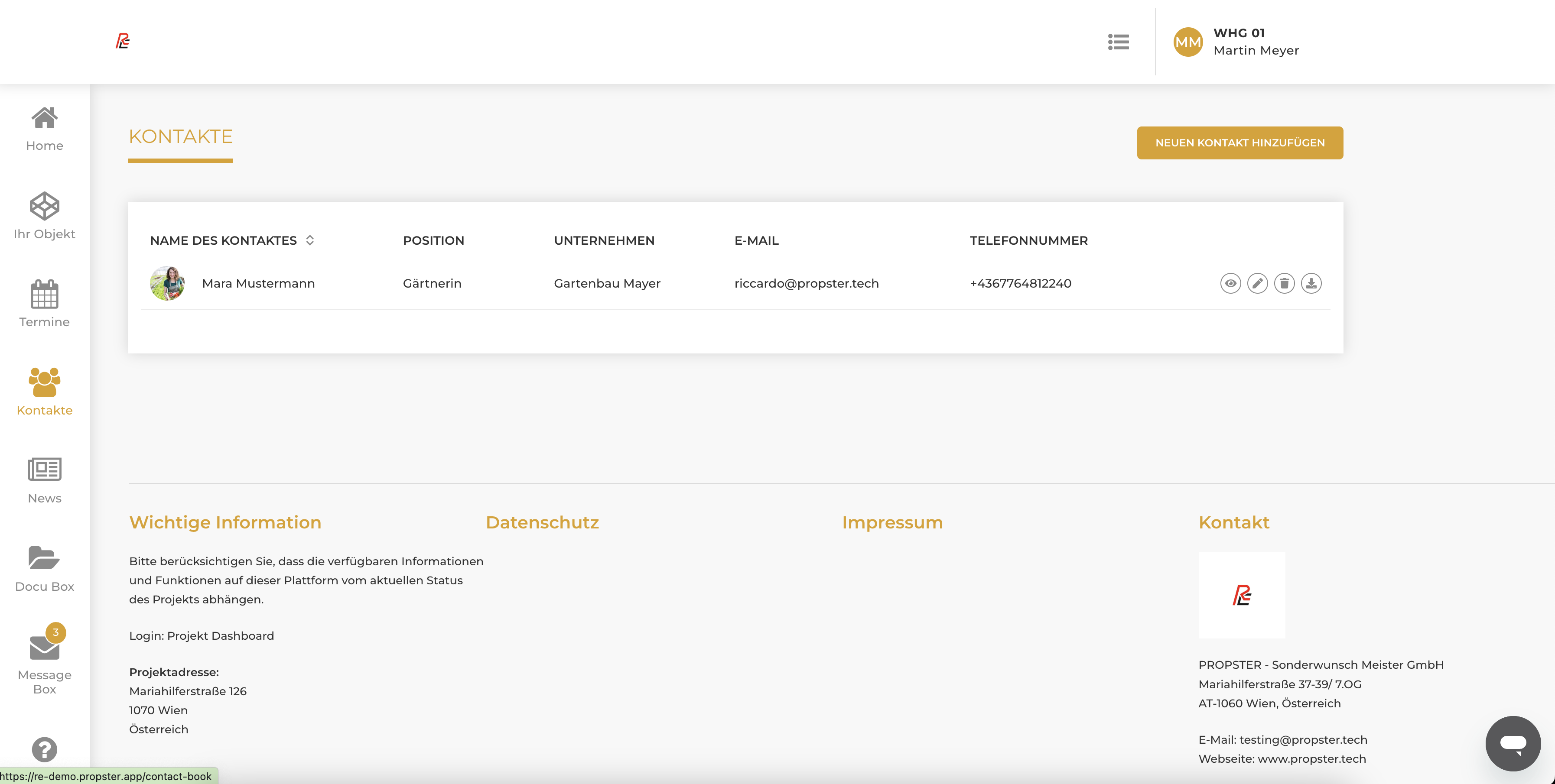 Zweck: Erklärung der Kontakt-Funktion im Frontend der PROPSTER-Kundenplattform