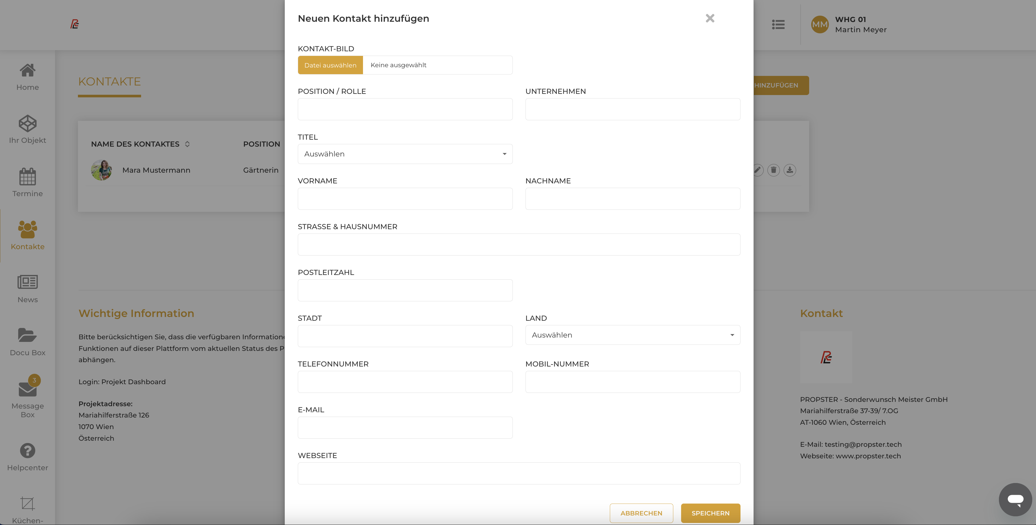 Die Kontakt-Funktion ermöglicht es Endkunden, projektbezogene Ansprechpartner direkt in ihrer Kundenplattform zu erfassen und zu verwalten.