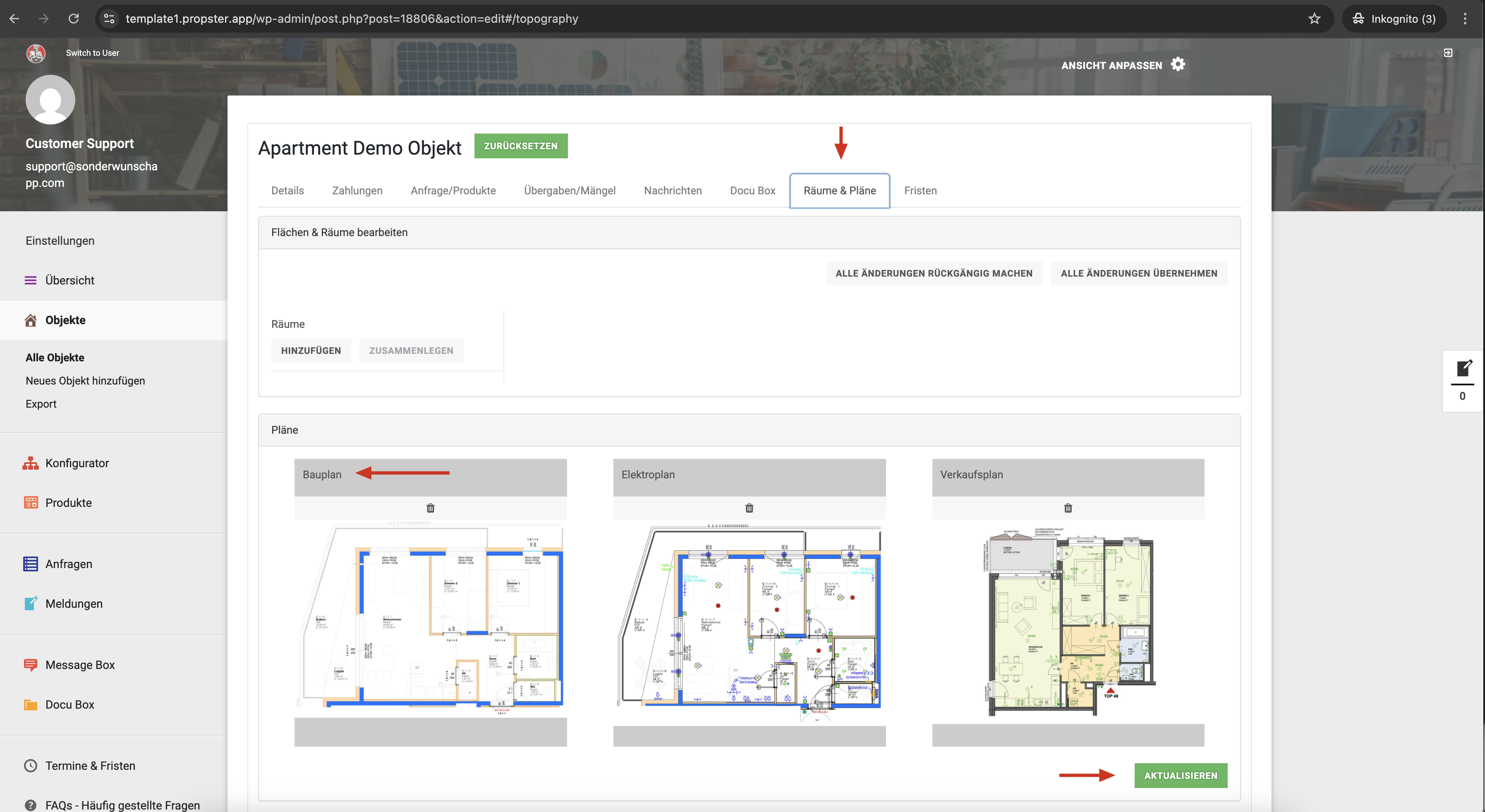 3. Bauplan im Objekt hinterlegen