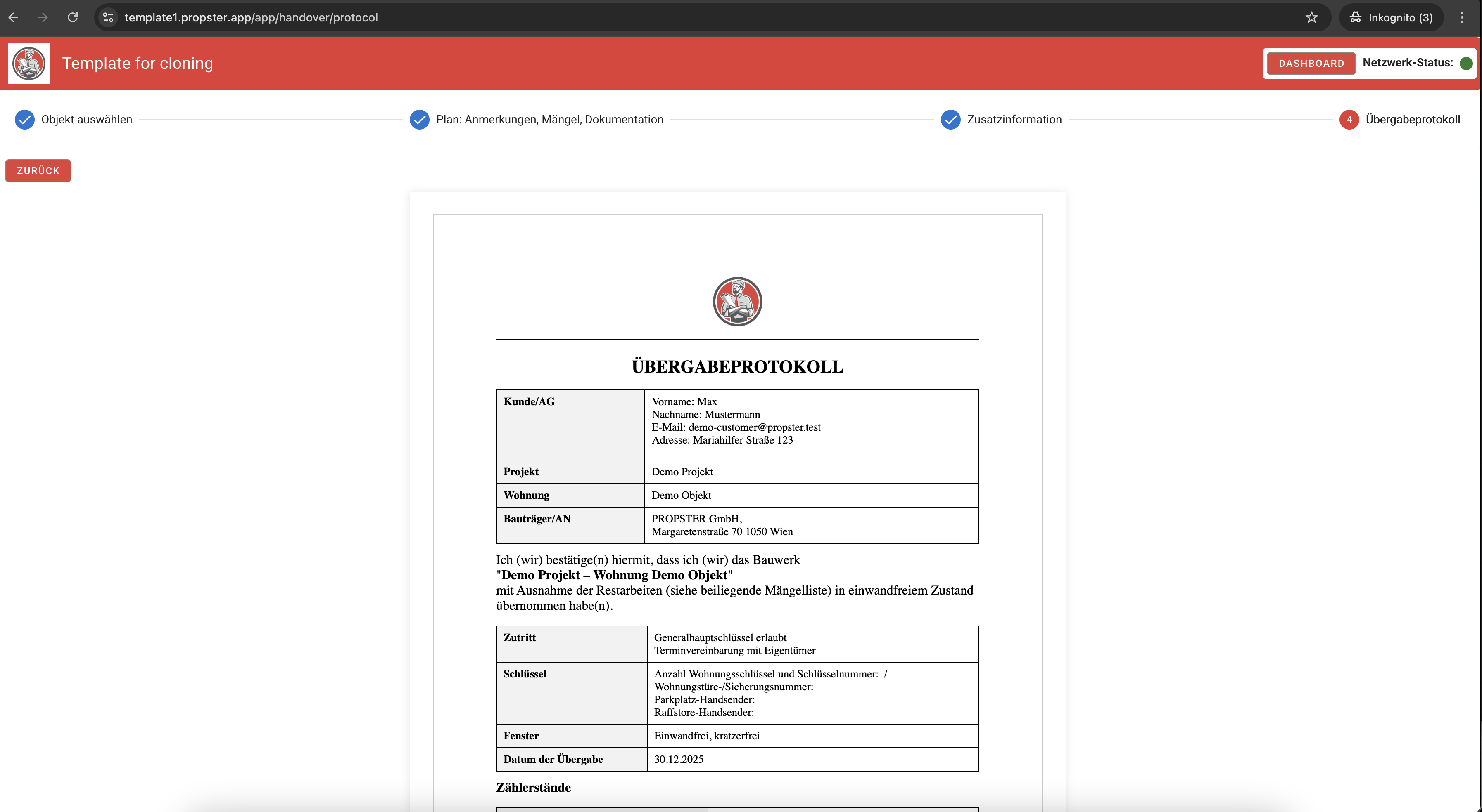 9. Übergabeprotokoll & Unterschrift (Schritt 4)