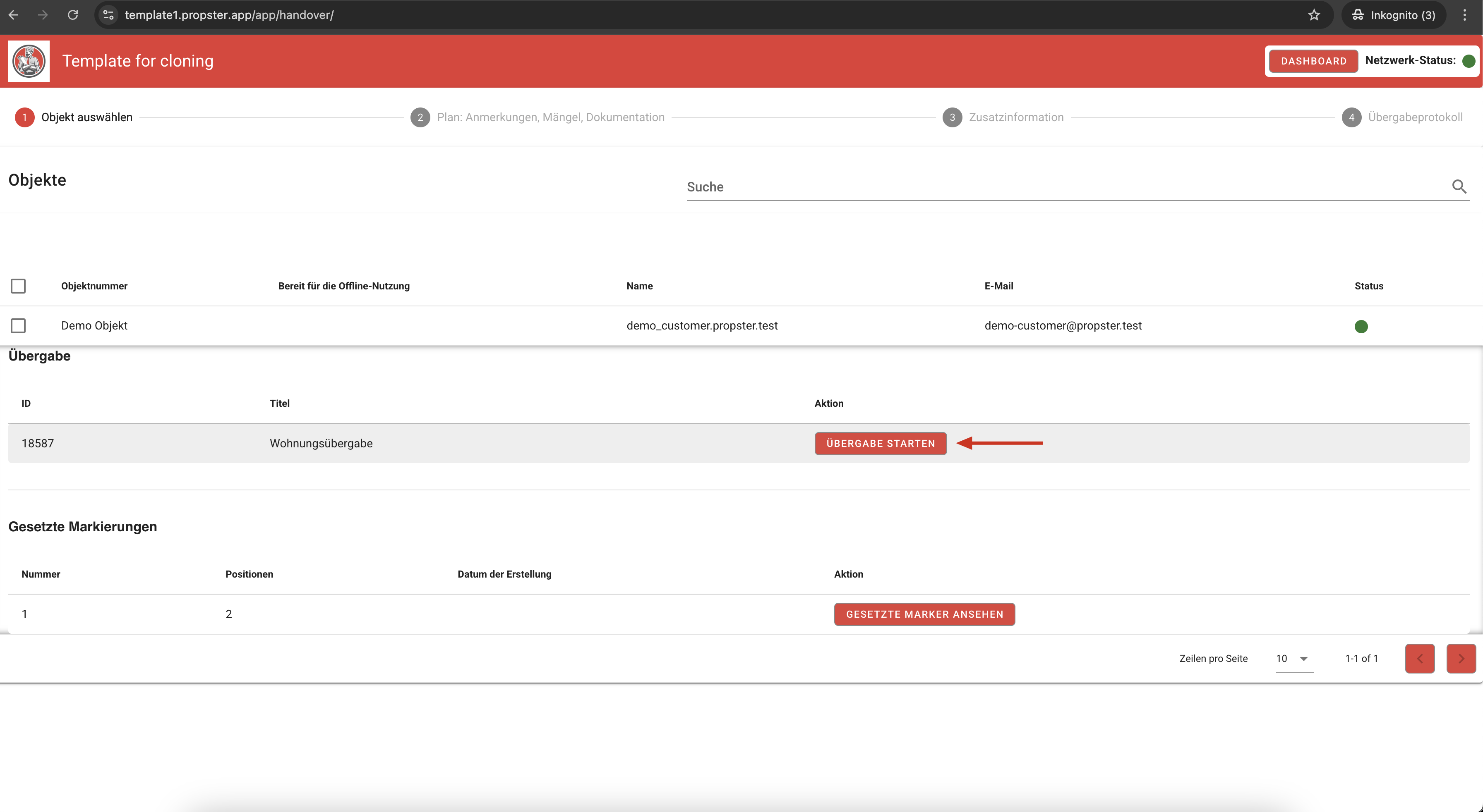 Zweck: Schritt-für-Schritt-Anleitung zur Durchführung einer Objektübergabe inkl. Mängelerfassung in PROPSTER